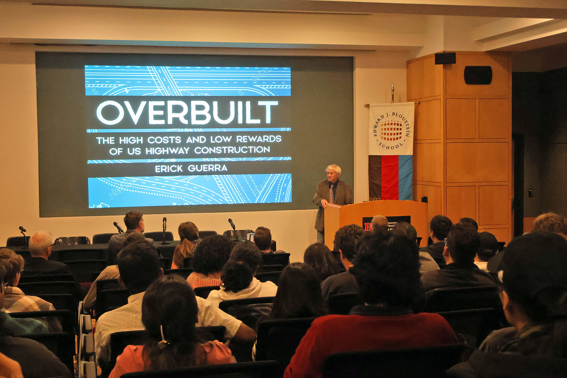 On Wednesday, October 29, a robust crowd of staff, students, faculty, board members, and guests gathered for the VTC Distinguished Lecture featuring Dr. Erick Guerra and his new book, Overbuilt: The High Costs and Low Rewards of US Highway Construction.